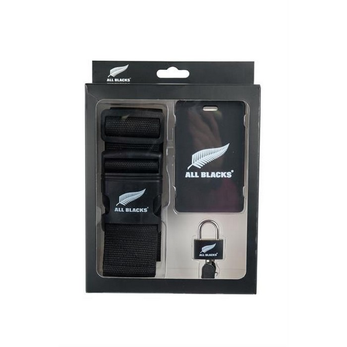 Security and easy identification is what this All Blacks Travel Set offers you. The adjustable luggage strap is made from durable nylon webbing with a quick-release buckle closure and will secure small or large bags with the 1.8m length. Attach the luggage tag to carry on or check-in items for easy identification and a stylish look. Secure cabin bags or check-in luggage with the padlock. Product Features: